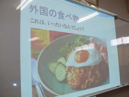 ナシゴレンやトッポギなどの海外の食事の名前の理由をわかりやすく説明してくれました。おいしそうな写真ですね。次回の放送集会も楽しみですね。楽しい集会で、坂本先生もニッコリでした。