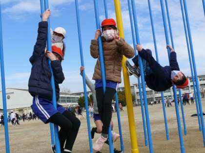 今年度若小に新たにできた遊具は子どもたちに大人気です。上り棒に滑り台、ブランコや雲梯など、放課になると多くの児童でにぎわいます。外で元気良く体を動かして、コロナに負けずにがんばろうね。