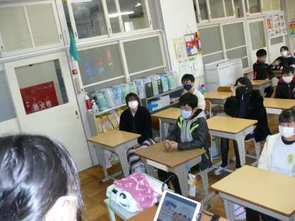 続いては6年生の朝の風景です。英語のスピーチ活動です。パワーポイントを使ってみんなに分かりやすく説明をすることができました。話を聞く姿勢もさすが6年生。話し手をしっかりと目で見て聴くことができていますね。