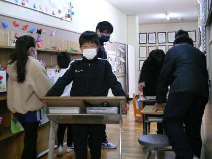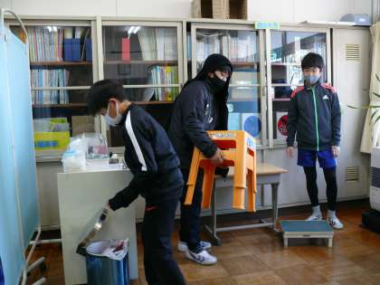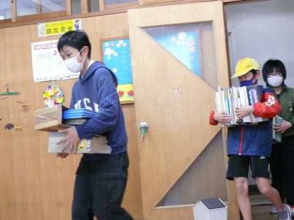 奉仕作業の翌日には、廊下に出した備品を元に戻す作業もあります。