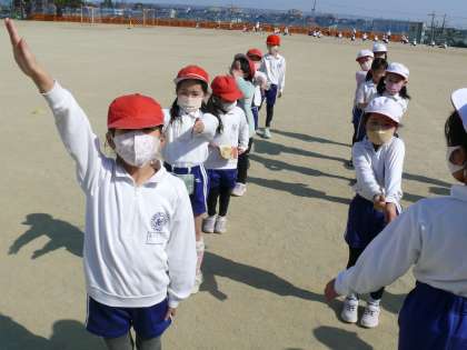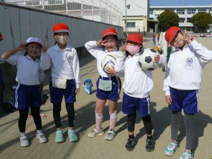 体育でサッカーの学習をしました。上手にけることができたかな?
