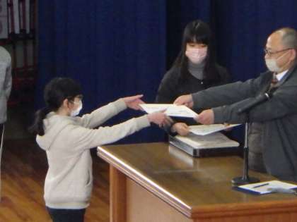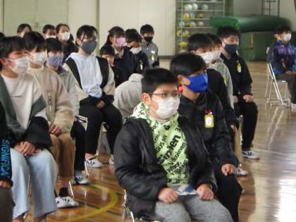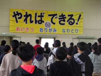 卒業式の練習の様子の続きです。体育館後方の「やればできる」が卒業生を見守ってくれています。