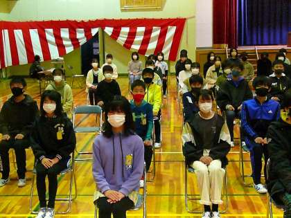 本日は卒業式リハーサルを行いました。1年生から5年生の教室はTeamsでつなぎ、体育館の様子をオンラインで配信しました。卒業式当日は、在校生は教室でオンラインで式に参加し、6年生の卒業を祝います。