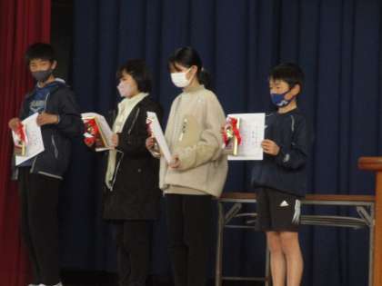 皆勤賞・精勤賞の表彰を行いました 公開日 2022/03/15 更新日 2022/03/15 お知らせ 卒業式リハーサル終了後、6か年皆勤賞・精勤賞の表彰を行いました。6年間、暑い日も寒い日も、時には調子のよくない時も、休まず登校することは本当にすごいことです。頭が下がる思いです。皆勤賞8名、精勤賞25名のみなさん、本当によくがんばりました。受賞、おめでとうございます。心よりお祝いの言葉をお贈りいたします。