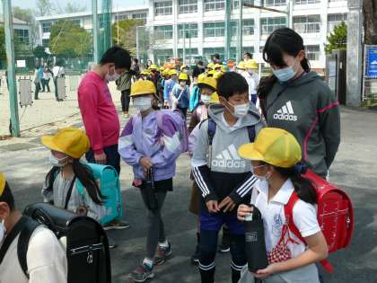 最後は2年生から6年生の一斉下校です。今日から本格的に学校生活が始まりました。係決めやクラスのルールの確認など、それぞれの学級で学活を行いました。1年生のみんなは、給食は来週の月曜日開始です。おいしい給食、楽しみですね!!