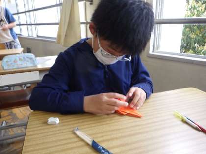 折り紙を折っている学級もありました。何を作っているのでしょうか?