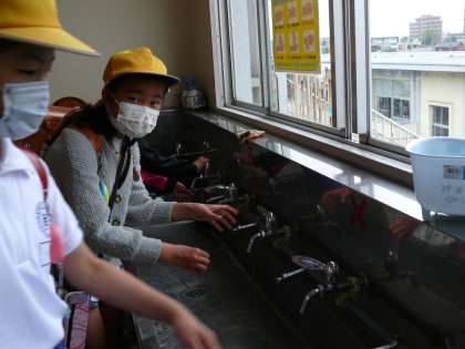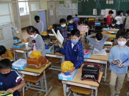 4年生の朝の様子です。登校したらすぐに手洗い。その後、朝の準備です。