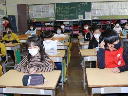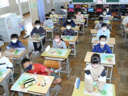 3年4組、4年3組、5年1組の朝の様子です。