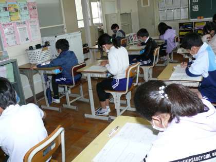 今日は6年生は全国学力・学習状況調査でした。国語・算数・理科の3教科のテストを行いました。