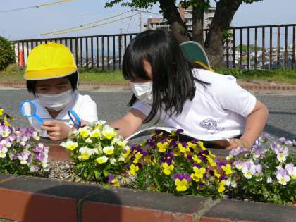 3年1組の理科の授業です。春の植物・生物を探していました。