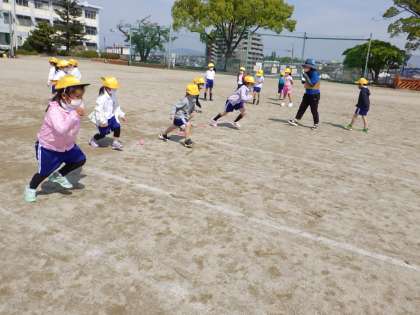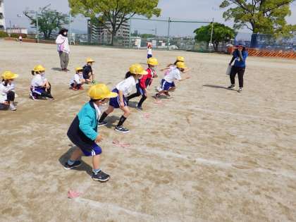 運動会の練習が連日行われています。まずは1年生の徒競走の練習です。
