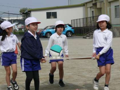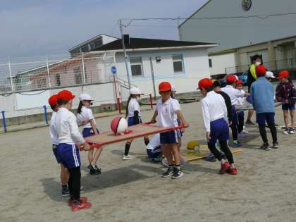 最後は3年生の競遊練習の様子です。ボールを落とさずに運べたでしょうか?