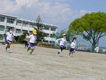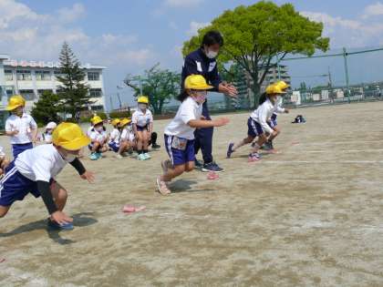 運動会に向けて、1年生は徒競走の練習中。本番もがんばろうね。