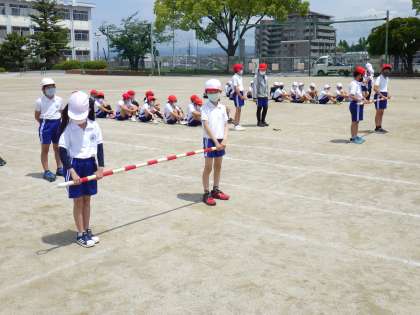 3,4年生の「台風の目」の練習の様子です。いよいよ今週末は運動会です。練習にも熱が入っています。
