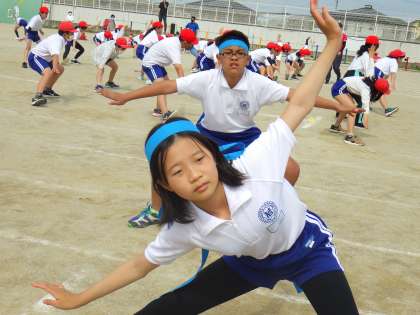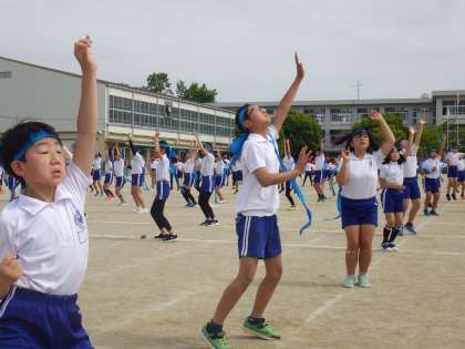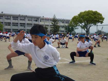 ソーラン練習の様子の続きです。水色の鉢巻きを巻いて、気合十分。