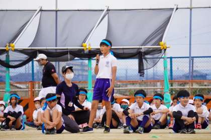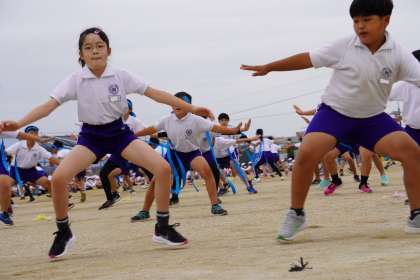本日、若園タイムに5,6年生が若小ソーランを1年生から4年生に披露しました。迫力ある演技に、1年生から4年生は固唾をのんで演技を見ていました。演技終了後、全校から自然と拍手がわき上がりました。5,6年生のみんな、運動会当日も迫力ある演技を頼みますね。