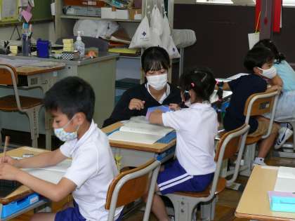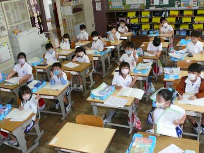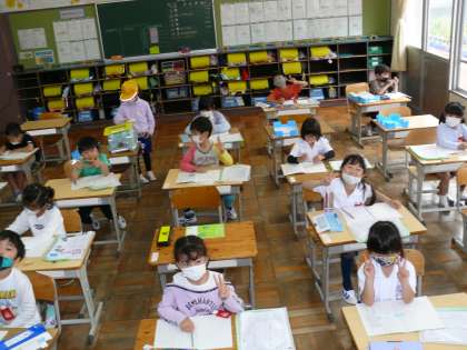 運動会前日の朝の様子です。明日の運動会に向けて、どのクラスも元気いっぱい。まずは1年1組,1年3組,1年5組の様子です。