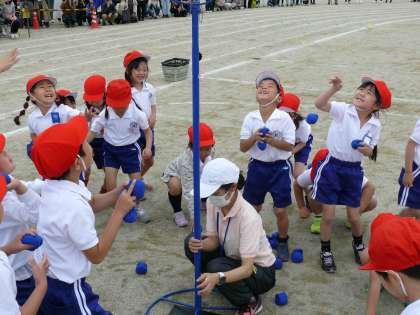 続いては玉入れの様子です。クラスの友達と協力して、たくさんの玉を入れることができました。練習の成果がしっかりと発揮できましたね。