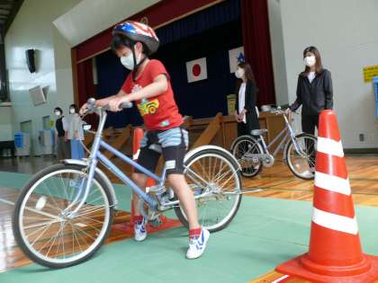 本日、3年生は2,3時間目にPTA安全委員さん、交通指導員さんにご来校いただき、「自転車教室」を行いました。体育館で実際に自転車に乗り、交差点や踏切などでの注意事項を確認しました。学習したことをいかして、今後も交通安全に十分気を付けて自転車に乗りましょうね。会のためにご来校下さった皆様、本当にありがとうございました。