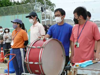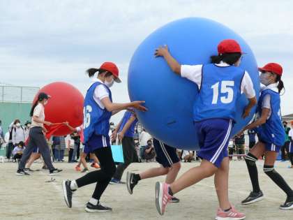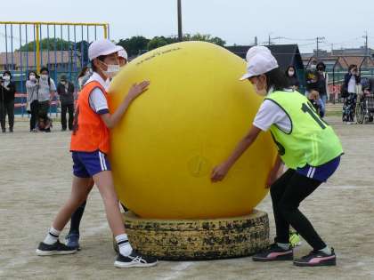 続いては5,6年生の競遊種目「大玉送り」の様子です。大玉を落とさないよう、仲間と協力して運ぶことができました。見守る先生たちも気合十分です。