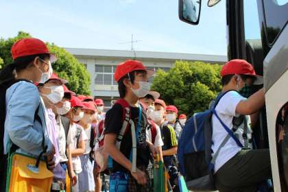 本日4年生は公共施設見学に出かけました。朝の出発の様子です。天気もよく、絶好の校外学習日和でした。現地での活動の様子は明日アップします。お楽しみに。