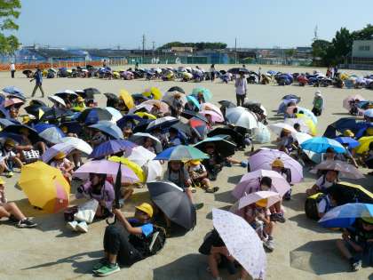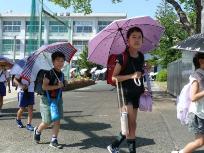 本日の傘さし登下校の様子です。傘をさすことで前後の友達との距離ができ、マスクを外すことができます。熱中症対策には、マスクを外すことも重要になります。ご家庭でもお子様にお声かけいただけますと助かります。明日は学校公開日です。多くの皆様のご来校をお待ちしています。