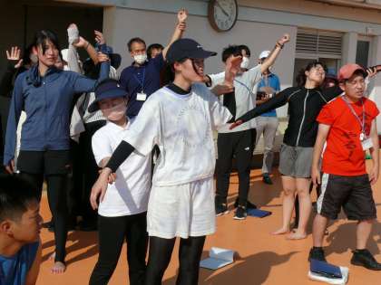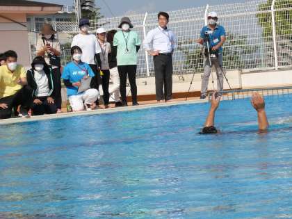 ソノダスイミングスクール代表取締役の石川様をお招きして、水難訓練を行いました。明日からのプールの授業、安全に行うために先生たちも様々な研修を行いました。