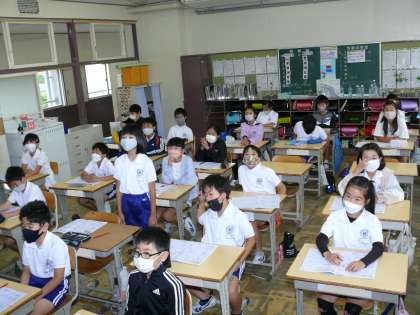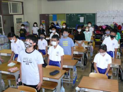 続いて5年3組,5年4組の朝の様子です。気を付けの姿勢がとってもいいですね。