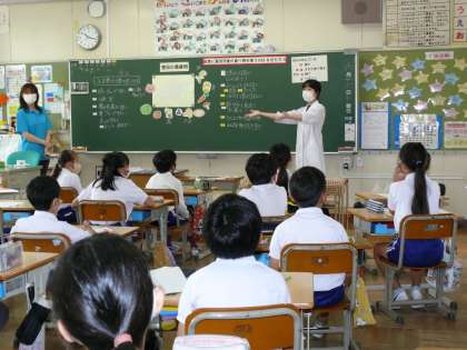 4年生は南部給食センターの職員の方を講師としてお招きし、「食に関する授業」を行いました。地産地食について詳しく学ぶことができました。豊田市は様々な農産物がとれる豊かな地域です。地域の食材を今後もおいしくいただきたいですね。本日講師を務めて下さいました南部給食センターの職員様、ありがとうございました。