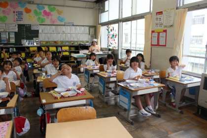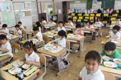 続いて1年4組,1年5組の給食の様子です。新型コロナに気を付けて、静かに給食を食べています。1年生のみんな、とっても立派だね。