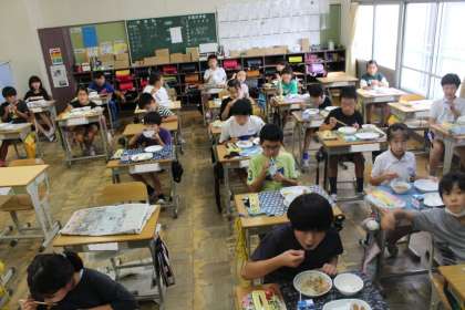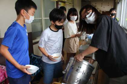 最後は5年3組,5年4組の給食の様子です。5年3組は多くの子がおかわりをしていました。たくさん食べて、体を強く、大きくしていきましょうね。