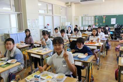 給食の様子(7) 公開日 2022/06/30 更新日 2022/06/30 お知らせ 最後に6年4組,フレンド学級の給食の様子です。暑い日が続きますが、食事をしっかりととり、暑さに負けないようにしていきましょうね。