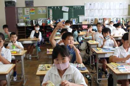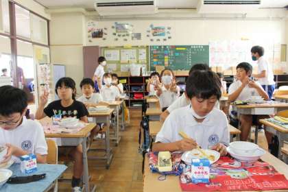 続いて4年4組,5年1組,5年2組です。今日は高野豆腐のうま煮でした。とってもおいしかったですね。