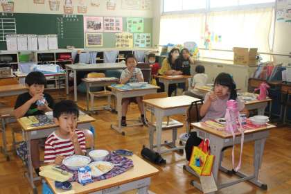 最後に6年4組,フレンド学級の様子です。今日もおいしい給食を作ってくださった給食センターの皆様に感謝。暑い日が続きますが、しっかりと食べて、夏休みまで元気に過ごしましょうね!!