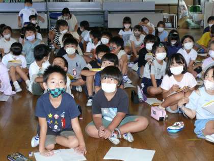 3年生の農業についての授業の続きです。とっても集中して講師の先生のお話を聞いています。
