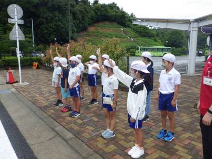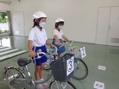 先週行われました、4年1組,4年4組の交通安全講習会の現地での様子です。自転車の交通ルールについて学びました。