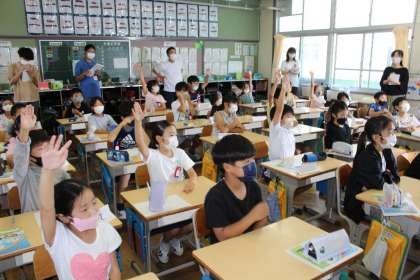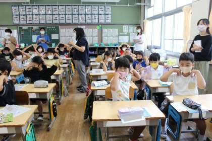 今日は3年2組特集です。英語の授業では多くの子が挙手をしていました。