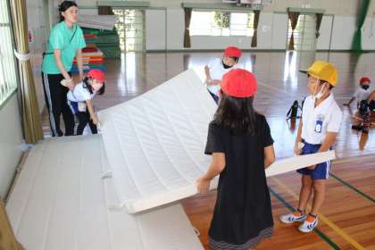 続いて2年2組の体育の様子です。今日は器械運動。マットの準備も自分たちでできました。さすが2年生、ですね!!