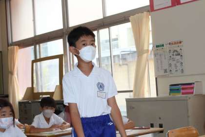 続いて3年4組の授業の様子です。すすんで手を挙げて発表できる子がたくさんいます。素晴らしいですね。
