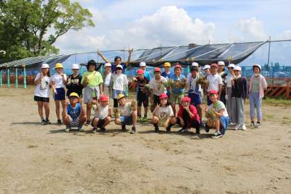 6年2組のみんなが、若小のために運動場の草抜きをしてくれました。暑い中でしたが、黙々と活動する姿はさすが6年生。全校のお手本ですね!!