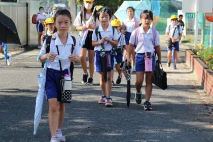朝の登校の様子です。まだまだ暑い日が続きますが、元気に登校できました。