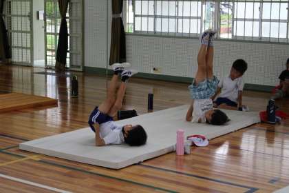 2年2組の体育の様子です。今日はマット運動に挑戦しました。つま先までピンと伸びていてかっこいいですね!!