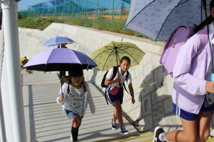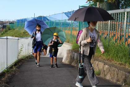 朝の登校の様子です。だいぶ涼しい朝になりましたが、マスクを外して登校できましたね。まだまだ熱中症対策を続けていきましょう。