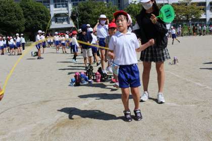 なわとび週間が始まりました。6年生のお兄ちゃん、お姉ちゃんが、1,2年生の背中をやさしく押して跳ぶタイミングを教えてくれているグループがたくさんありました。心あたたまる活動になりました。6年生のみんな、ありがとうね。