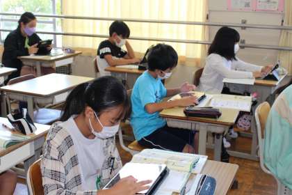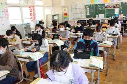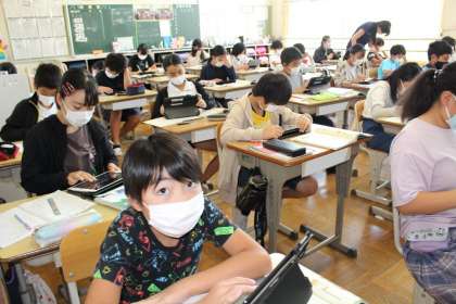 6年1組の算数の授業の様子です。学習用タブレットを上手に使って学びを深めていました。