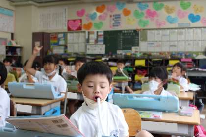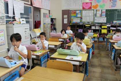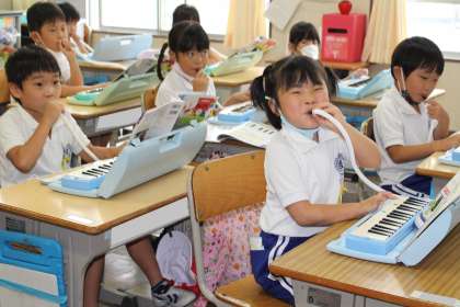 1年5組の音楽の様子です。鍵盤ハーモニカの練習をしていました。きれいな音色で演奏できましたね!!