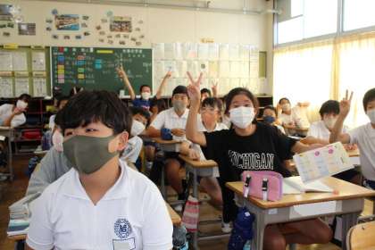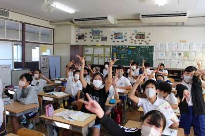 5年1組の授業の様子です。5年1組はみんな元気いっぱい。明るく楽しい雰囲気が写真から伝わってきますね!!