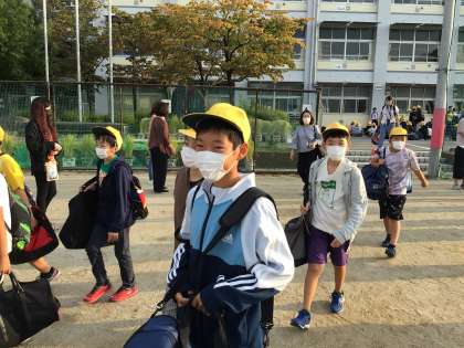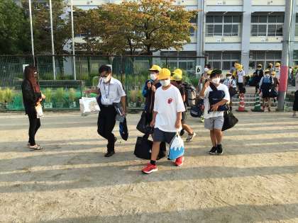 修学旅行 6 バスへ移動