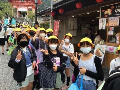 食事も終わってバスへ移動。午後はいよいよ学級別研修です。18時ごろホテルに到着する予定です。子どもたちはみんな元気に活動しています。