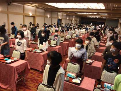 朝食が終わり退館式を行いました。代表児童のお礼の言葉、ホテルの方のお話を聞きました。立派なホテルで昨日の疲れもふっ飛びましたね。この後部屋の片付けをしてからバスに乗って東大寺です。